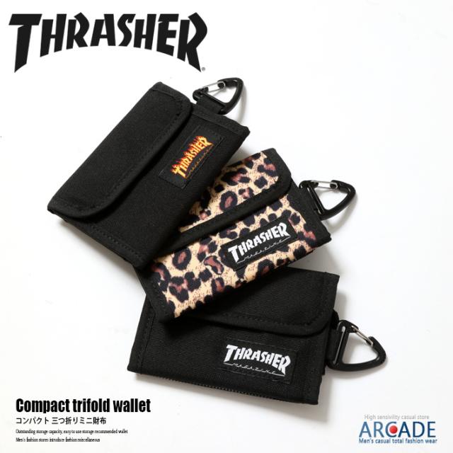 財布 メンズ 短財布 THRASHER スラッシャー 小銭入れ付き 新作 ミニ財布 ショートウォレット ブランドロゴ 三つ折り財布