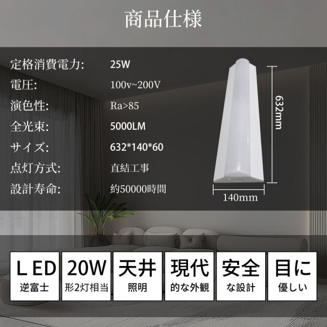 【送料無料】逆富士照明器具 逆富士型 led ベースライト 25w 2灯 led おしゃれ オシャレ 照明器具 薄型 高輝度 節電 ledライト 電球色 白色 昼白色 昼光色 逆富士LEDベースライト 高耐久性 超省エネタイプ LED蛍光灯照明器具 オフィス 工場 倉庫 器具一体型 直管LED 2年保証