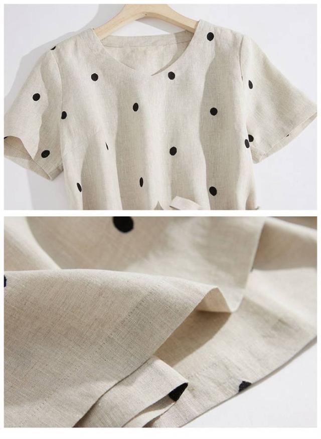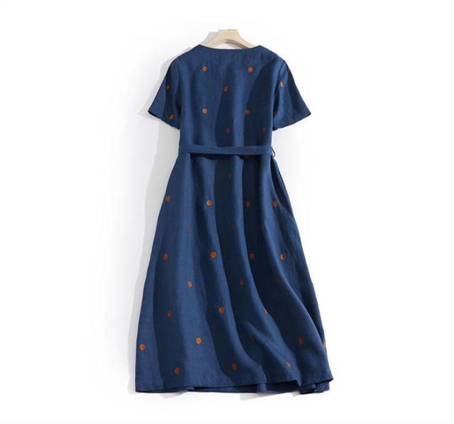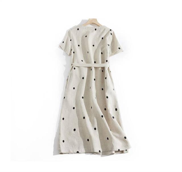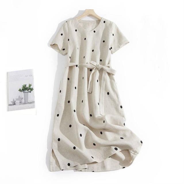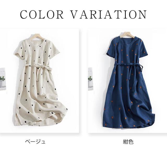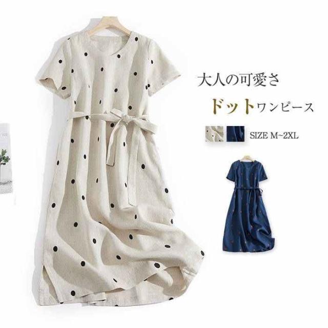ワンピース レディース ロング 夏 半袖 コットン 夏ワンピース ロングワンピース 半袖ワンピース Vネック ナチュラル おしゃれ 涼しい つなぎ ドット 柄 ベルト付き 20代 30代 40代 50