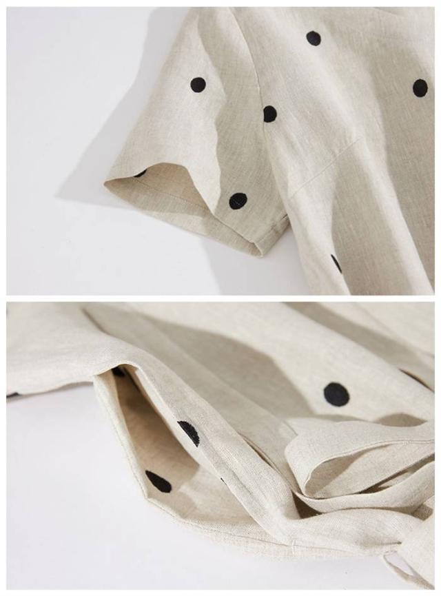 キーワード ワンピース レディース ロング 夏 半袖 コットン 夏ワンピース ロングワンピース 半袖ワンピース Vネック ナチュラル おしゃれ 涼しい つなぎ ドット 柄 ベルト付き ベルト 綿 柔らか 涼しい シンプル すっきり スッキリ カジュアル リラックス 通勤 通学 日常 ディリー