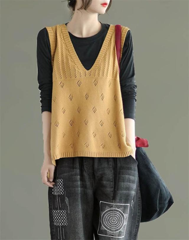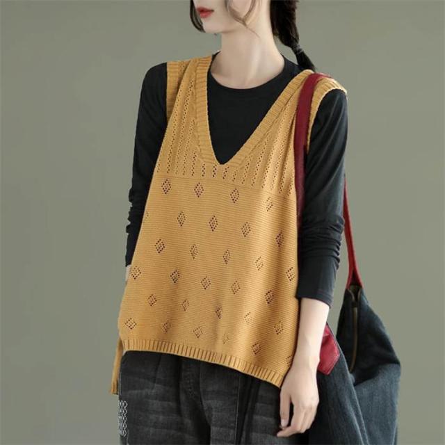 キーワード ニット ベスト レディース 春 秋 春秋 トップス チョッキ ニットベスト 春ベスト おしゃれ 着回し 体型カバー ノースリーブ Vネック 無地 透かし編み 裾前後差 カジュアル レイヤード リラックス 森ガール 抜け感 着心地 柔らかい 重ね着 通学 通勤 日常 ディリー 普段着