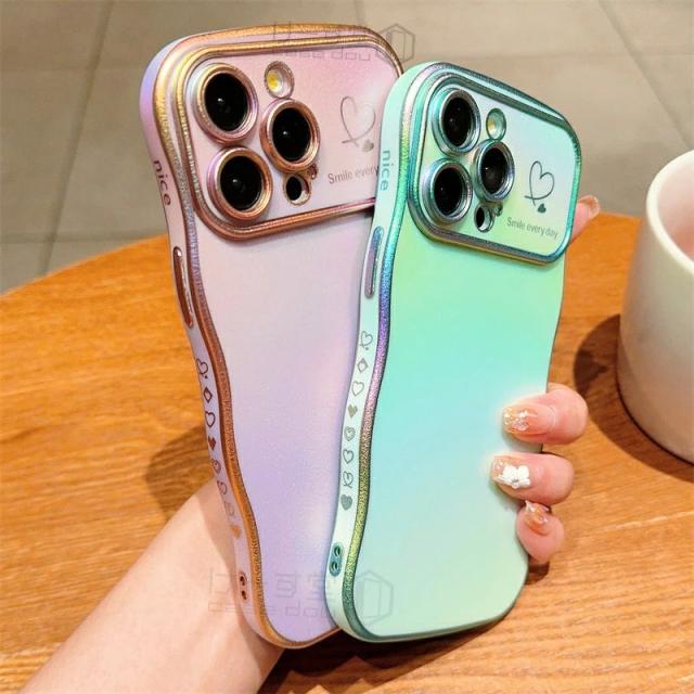 多彩! うねうねケース iPhone16e iPhone17 iPhone13 iPhone14 ケース キラキラ オーロラカラー 韓国 スマホケース ウェーブ iPhoneケース アイフォン アイホン16 15 14 Plus 13 12 11 Pro Max なみなみ おしゃれ スマホカバー レディース カメラレンズ保護 レンズカバー