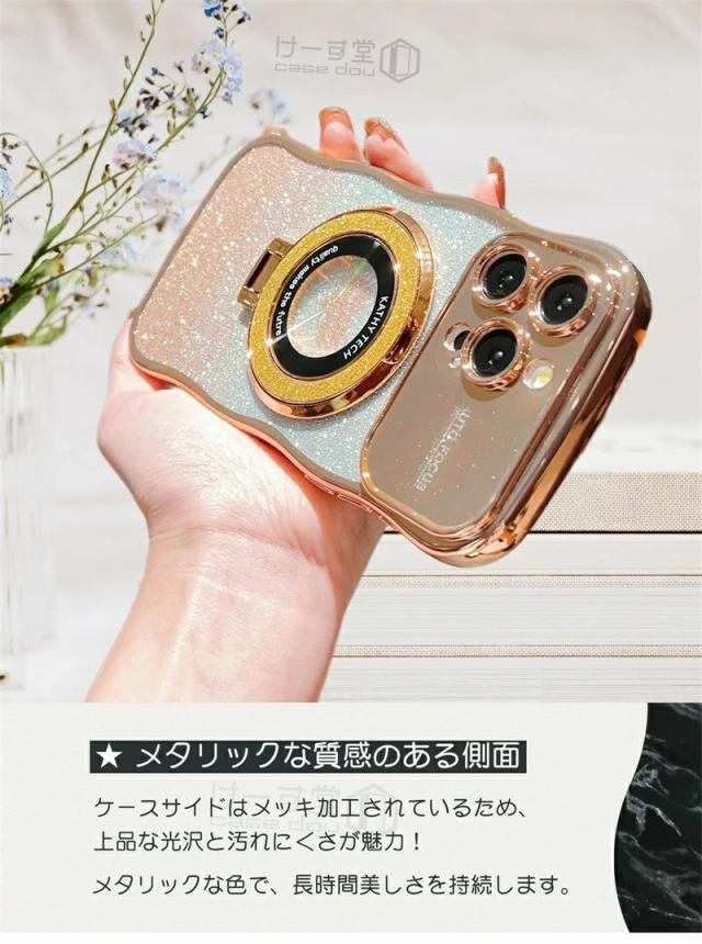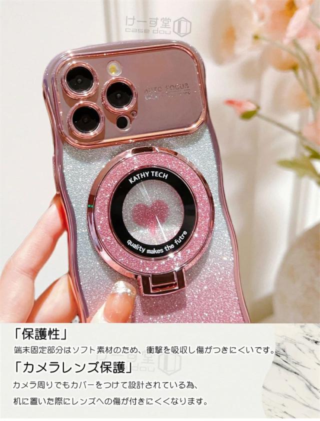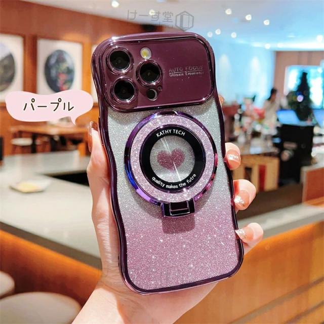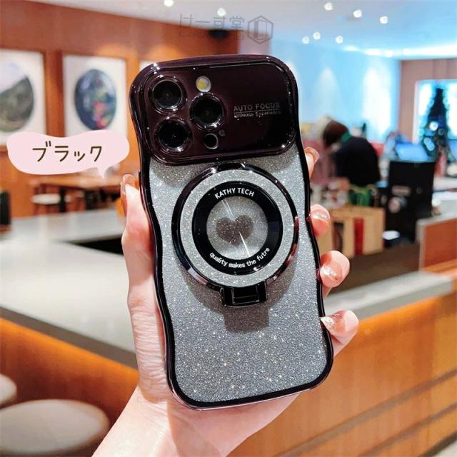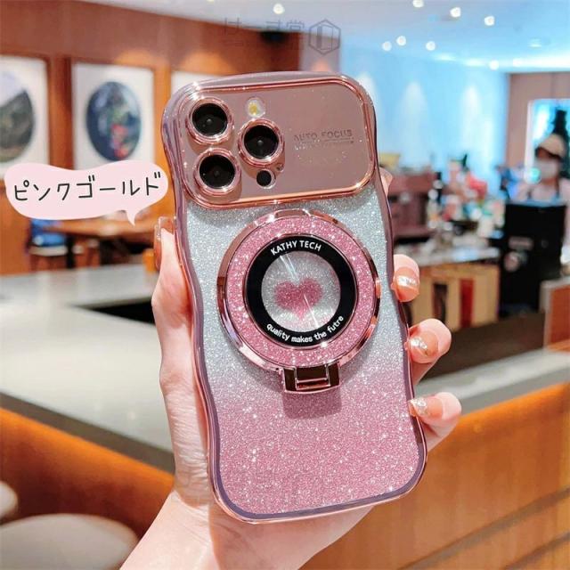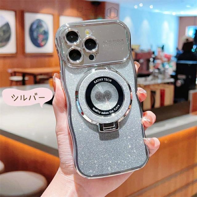 クリアケース+インナーシート付き iPhone17 ケース MagSafe iPhone17 Pro Max ケース マグセーフ マグネット搭載 耐衝撃 クリア 縦置き 横置き スタンド iPhone 16 15 14 13Pro 16Plus グリッターケース 韓国 可愛い かわいい ハート柄 おしゃれ 磁気リングXクリアバック