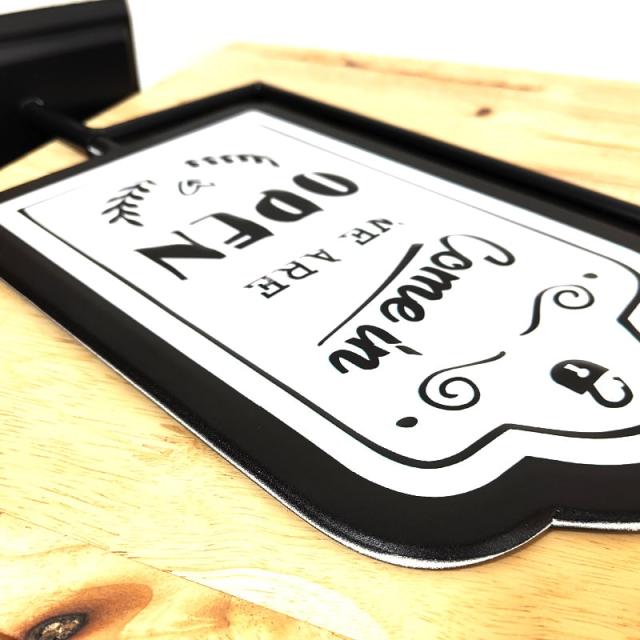 OPEN(開店)とCLOSED(閉店)が表裏にデザインされた両面仕様の看板です。