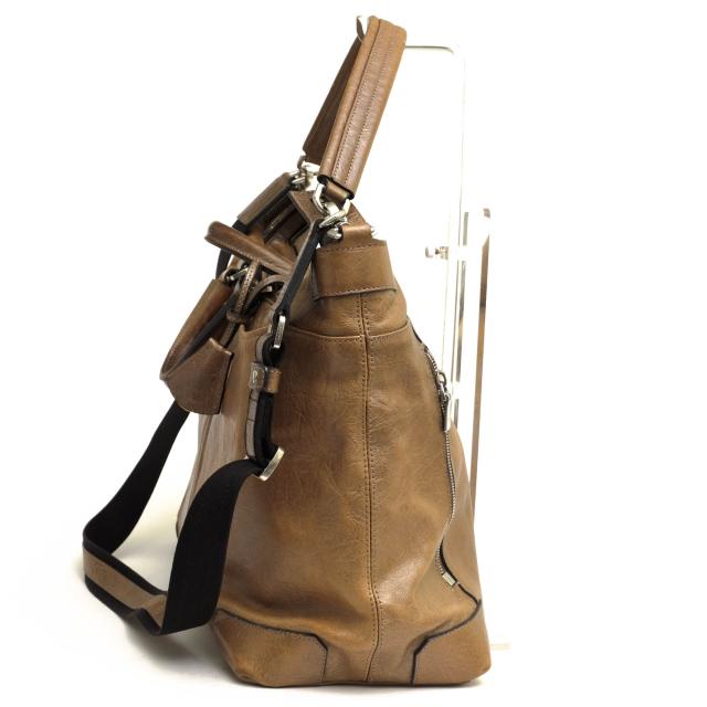 きめ細かくて柔らかいキップレザーを使用、メタリック仕上げのレザーの質感も美しく、適度にスパイシーな雰囲気でファッションのアクセントに最適です。手提げ専用のショートハンドル付きで3wayでご利用いただけます。