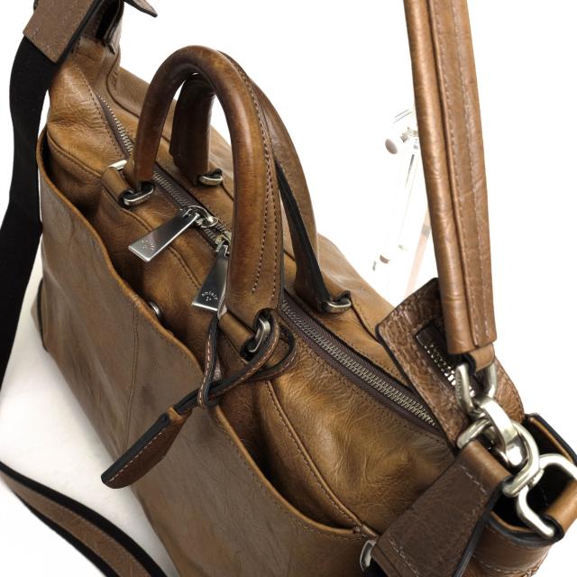 ○アニアリ aniary メタリック キップレザー 牛革 ビジネスバッグ 06-09000 3WAY ショルダー 2WAY ショルダーバッグ シボ革 シュリ 中古