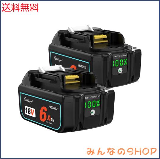 Waitley2個セットマキタ 互換 バッテリー BL1860B 18V 6.0Ah 電動工具用 バッテリー 大容量電池LEDデジタル残量表示