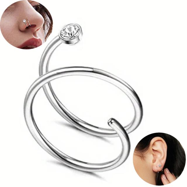 ステンレス製の2回転させた20ゲージのツイストリングにキュービックジルコニアをセットしたボディピアス。