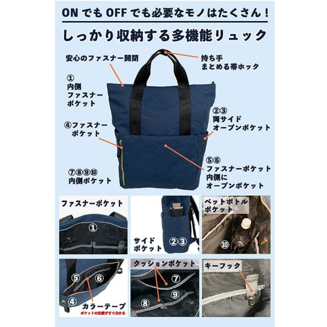 | 商品説明 | 【お出かけの相棒にぴったり】 ・色んなシーンでヘビロテ間違いなし☆多機能な「TWILIGHT AVENUE リュック」。 【軽やかで使い勝手抜群なリュック】 ・必要なものはしっかり収納できて、サッと持ち出せる!お出かけや旅行、マザーズバッグにも♪ 【開閉スムーズ、安心の天ファスナー】 ・ガバっと開いて取り出しやすく、ファスナーを閉じればプライバシーを確保。 【A4対応で荷物をひとまとめ】 ・A4サイズがすっぽり。タブレットや着替えなども収納できて、頼りになるサイズ感。 【嬉しいメイン直結ファスナー付き】 ・リュックを背負ったままでも背面ファスナーを開いて、荷物の取り出しが可能。 【迷子知らず◎充実の13ポケット】 ・合計13個のポケットとキーフックを装備。小物を探す手間を省けて、スマートな収納が叶う♪ 【ポケット位置をひと目で把握】 ・メインとフロントポケット内は、カラーテープでポケット位置がわかりやすいつくり。 【負担をかけず背負い心地快適】 ・背面とショルダーベルトには、クッション性をプラス。どちらもムレにくいメッシュ仕様。 【キャリーオンOKで移動もスマート】 ・背面の面ファスナーテープをキャリーケースのバーに通すことができる、キャリーオンタイプ。 (※)面ファスナーでフィット感を調節できます。 【手持ちのトート風にアレンジ】 ・上部のハンドルをスナップボタンベルトで留めて、トート風に!お好みでスタイルチェンジ。 【お気に入りを選べるカラー&質感】 ・異なる素材とカラーをラインナップ。全てコーデやシーンを選ばず使えるシンプルデザイン。 【ポケット仕様】 ・メインルーム内側:オープンポケット×3(内側メッシュ仕様)、ボトルポケット×1、ファスナーポケット×1 ・前面:ファスナーポケット×1(内側にオープンポケット×1) ・最前面:縦ファスナーポケット×1 ・サイド:オープンポケット×2 ・背面:シークレットポケット×1 ・ショルダー:ファスナーポケット×2 |