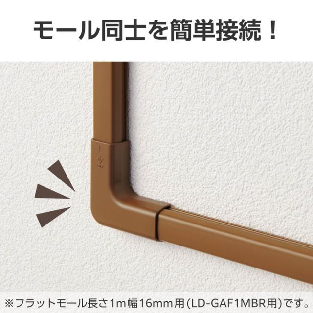 フラットモールの蓋の上からかぶせるだけ。配線の際のケーブルを保護し、すっきりと収納できるフラットモール(LD-GAF1MBR)用のジョイントパーツ(曲ガリ)。
