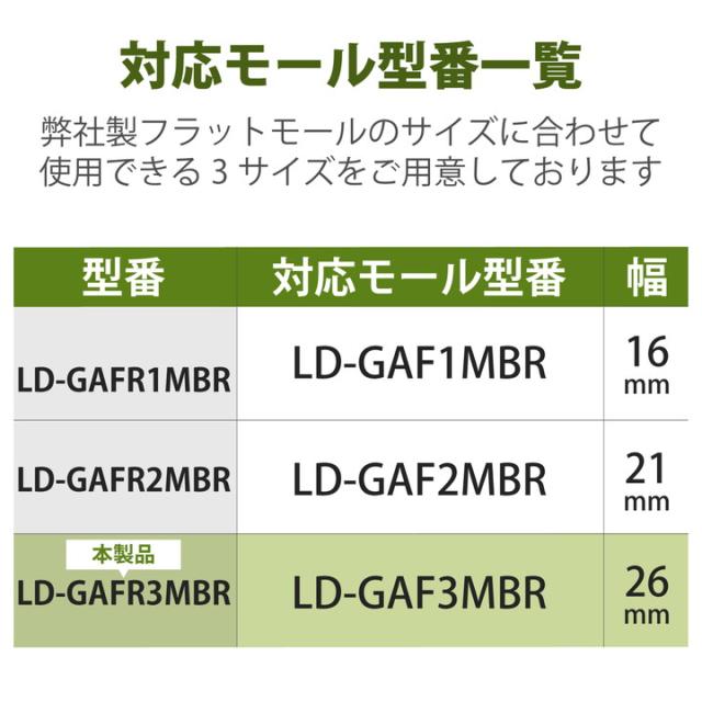 フラットモールの蓋の上からかぶせるだけ。配線の際のケーブルを保護し、すっきりと収納できるフラットモール(LD-GAF3MBR)用のジョイントパーツ(入ズミ)。