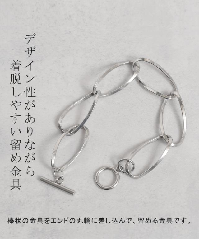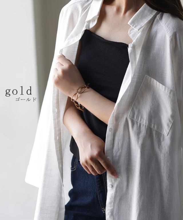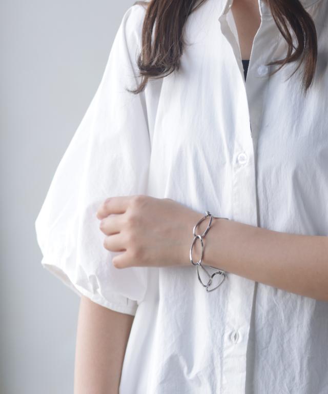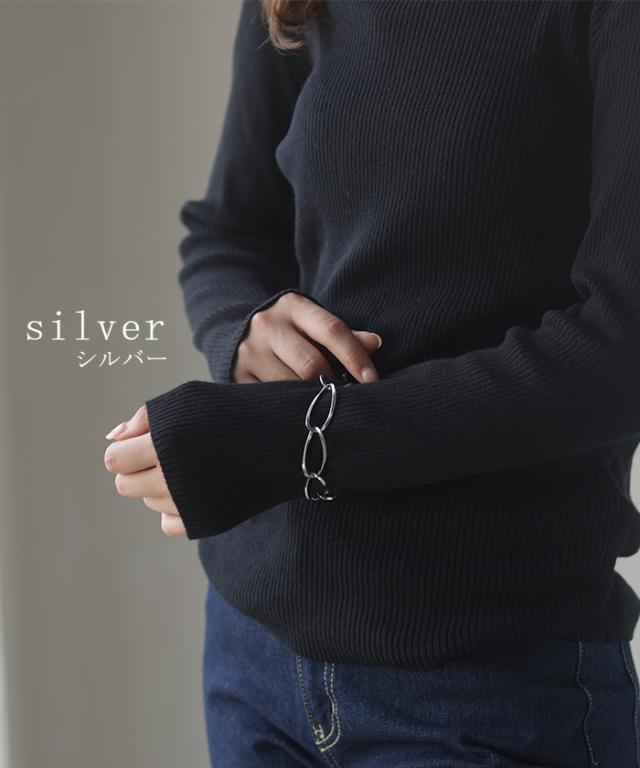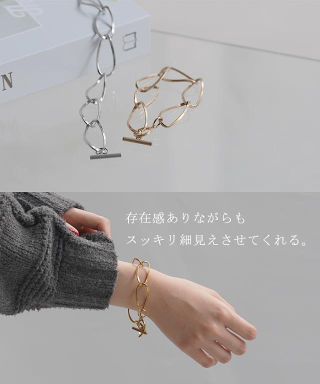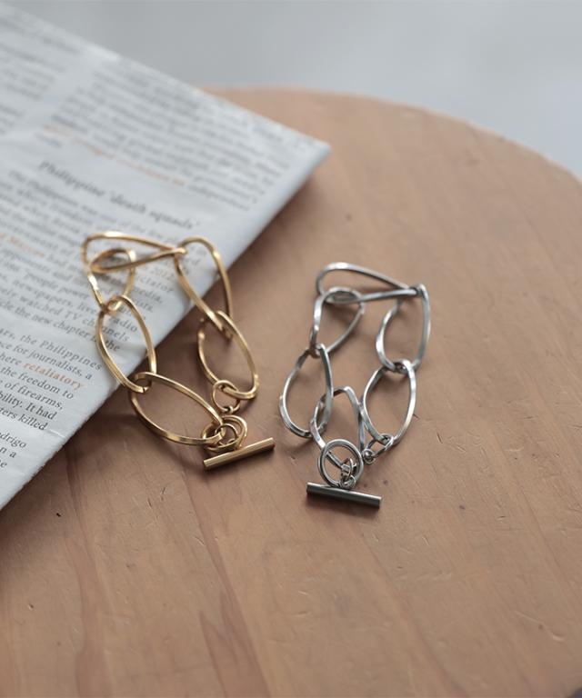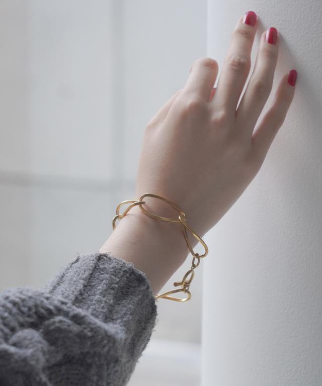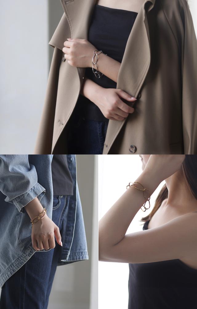 変形フープをつなぎ合わせた存在感のあるルックスが魅力のブレスレットです。