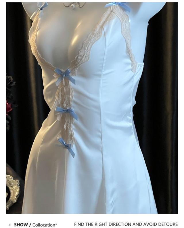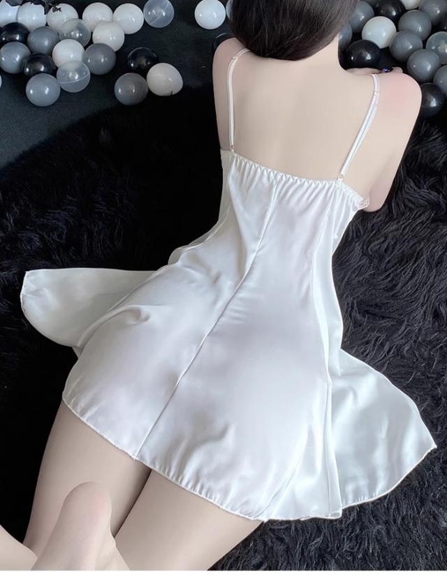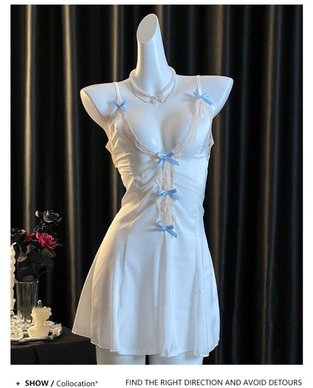 ハーフスリップ レース サテン ルームウェア セクシー 女性スリープウェア レディース Vネック パジャマ 調整可能 ベビードール ルームワンピース 部屋着 寝間着 dh059zbzblc