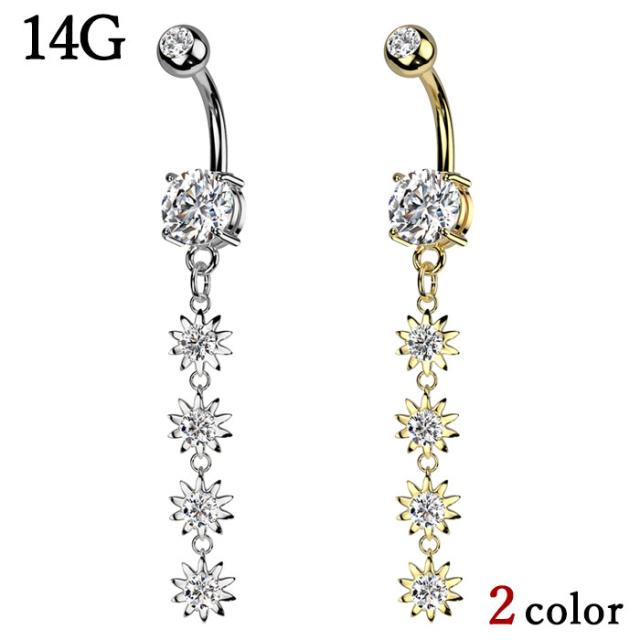 ヘソピアス 14G バナナバーベル 4 フラワー 花 ロングチャーム ジュエル ジュエリー ボディピアス へそピ ボディーピアス ボディピ 316L サージカル ステンレス