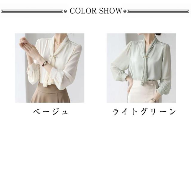 | ポリエステル素材のvネックボウタイブラウスになります。 サラッとした薄めの生地感で軽やかな印象に。 デコルテがスッキリと見えるvネックに、長めのボウタイで縦長ラインが作られスッキリとしたシルエットに。 シンプルで使いやすいアイテムなので、20代、30代、40代、50代、60代と幅広い年代でお使い頂けます。 また、オフィスや通勤、カジュアルなパーティー、お出かけ、デートなど様々なシーンで使いやすいブラウスとなります。 | |