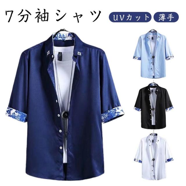 UVカット 7分袖シャツ 薄手 シャツ メンズ UVカット シャツ カジュアルシャツ 涼しいシャツ 30代 タンアップ 大きいサイズ 柔らかい かっこいい シンプル オシャレ 春夏秋 通勤 20代 夏服 40代 50代