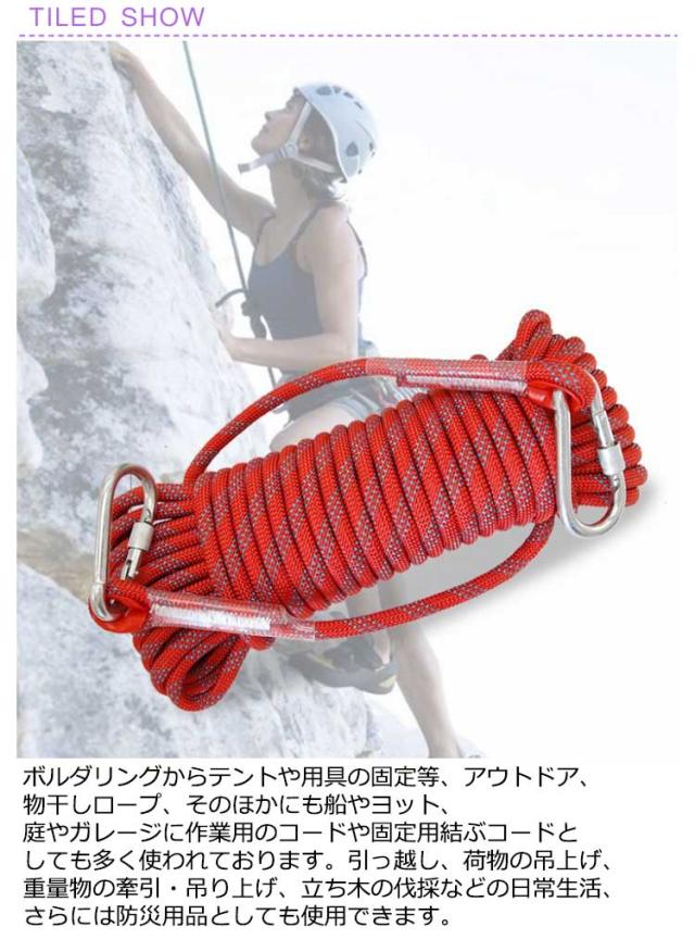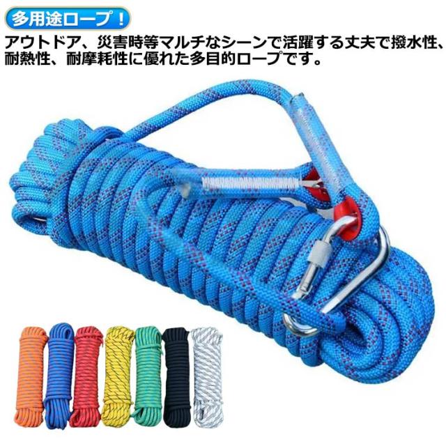 非常用ロープ 牽引 10mm ロープ 多機能ロープ 多用途ロープ カラビナ付き アウトドア ロープ キャンプ 救助ロープ 補助ロープ 耐久性 災害グッズ 防災グッズ 剪定 登山 伐採 防災 枝打ち クライミングロープ 固定 フックボルダリング