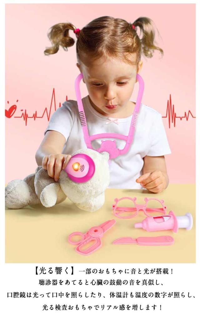お医者さんごっこ おもちゃ 医者さんおもちゃ 救急箱 おもちゃ 診察道具 お医者さんセット ロールプレイ ミニドクター 聴診器 ごっこ遊び 収納ケース付き お医者さんごっこ おままごと 男の子 女の子 誕生日 クリスマス 新年 入園祝い プレゼント ピンク