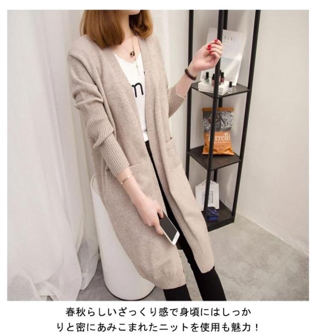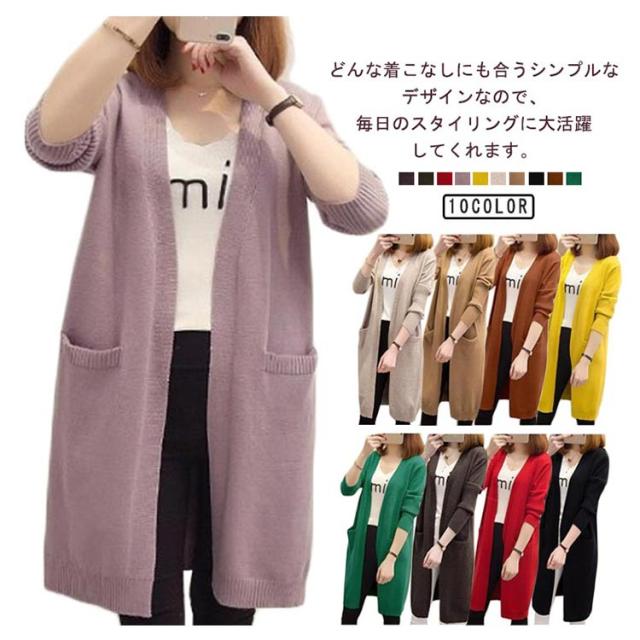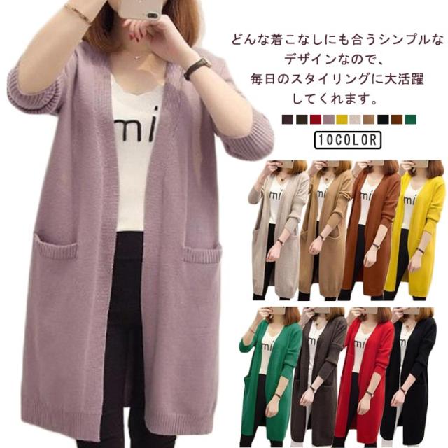ロング丈 ロングカーディガン カーディガン ニットカーディガン レディース ニット 羽織 ポケット付き アウター 春秋 無地 シンプル 体型カバー 大きいサイズ 春服 春物 秋服 秋物 大人 女性 通勤 通学 可愛い ライトアウター ギフト プレゼント 送料無料