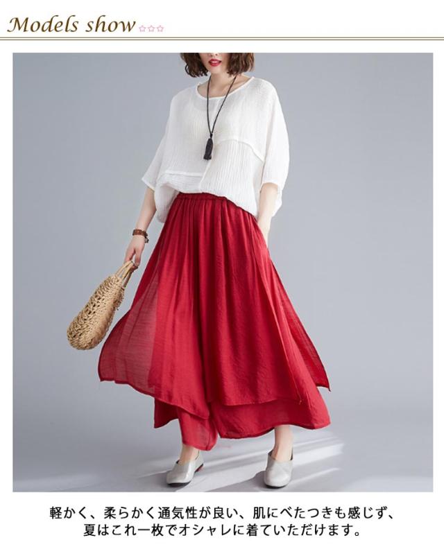 | 動くたび、しなやかに揺れて表情豊かな“ゆるひら”パンツ。 軽かく、柔らかく通気性が良い、肌にべたつきも感じず、夏はこれ一枚でオシャレに着ていただけます。 落ち感のある上品な素材で、女性らしさを惹き立ててくれて大人女子の魅力を格上げしてくれます。 体型もカバー出来るし、デザインも可愛いし、カジュアルの格好にはもってこいのワイドパンツ。 どんなトップス合わせもセンス良くお洒落が完成。 | |
