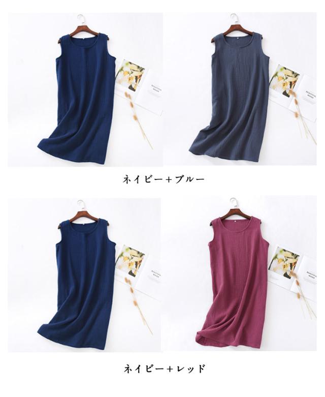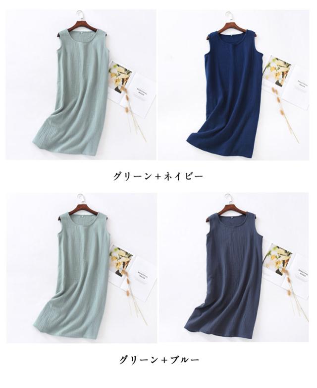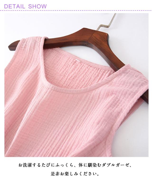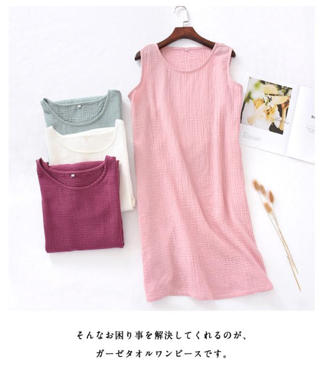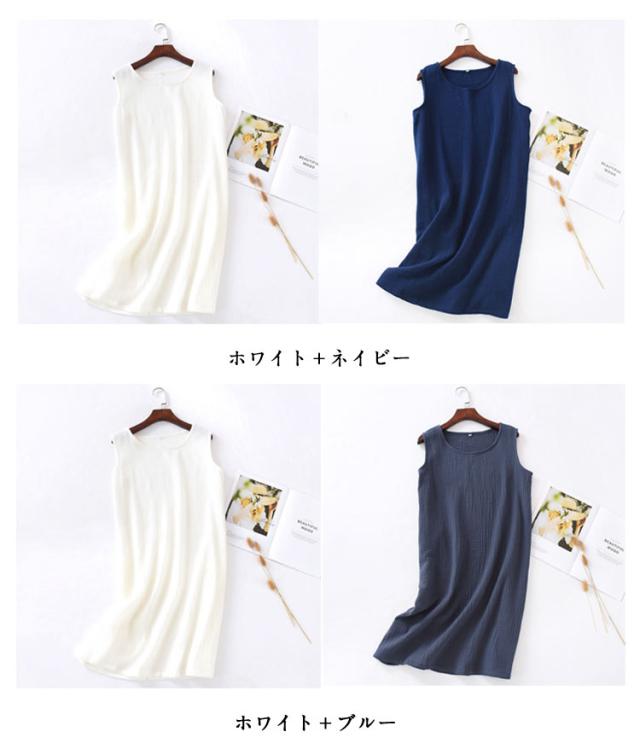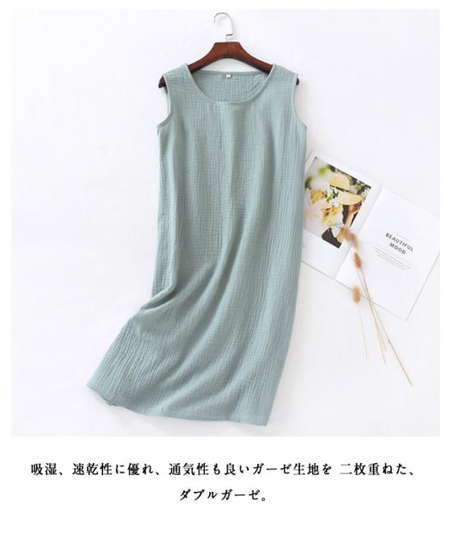 ルームウェア ワンピース ワンピ パジャマ ネグリジェ 湯上り インナーワンピ ガーゼ ルームワンピース 【2枚セット】ダブルガーゼ 【2枚セット】ダブルガーゼ レディース ノースリーブ ガーゼ 膝丈 ナイトウェア 寝巻き 夏 2重ガーゼ ガーゼパジャマ コットン 綿