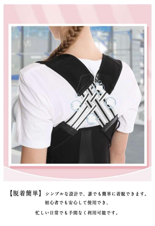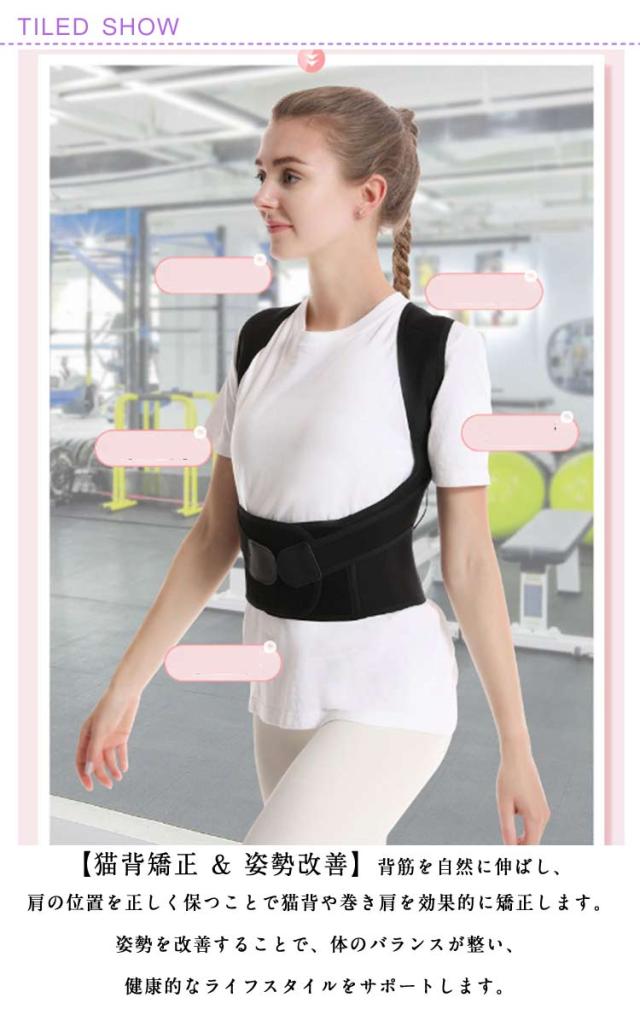| 日常生活や長時間のデスクワーク、スマートフォンの使用で姿勢が気になる方へ。猫背矯正ベルトは、自然で快適な姿勢をサポートし、背筋を美しく整える理想的なアイテムです。 薄手で目立たないデザインなので、夏場でも快適に使用でき、どんな服装にも合わせやすいです。 子供から大人まで幅広いサイズが揃っており、家族全員での使用が可能です。 【猫背矯正 & 姿勢改善】背筋を自然に伸ばし、肩の位置を正しく保つことで猫背や巻き肩を効果的に矯正します。姿勢を改善することで、体のバランスが整い、健康的なライフスタイルをサポートします。 【通気性抜群:】高通気性のメッシュ素材を使用しており、長時間の着用でも蒸れずに快適。特に暑い時期や長時間のデスクワークに最適です。 【自由調整】ベルト部分は調整可能で、自分の体型や好みに合わせてフィット感を自在に調整できます。サイズ調整が簡単で、成長に合わせて長期間使用できます。 【脱着簡単】シンプルな設計で、誰でも簡単に着脱できます。初心者でも安心して使用でき、忙しい日常でも手間なく利用可能です。 【男女兼用・大きいサイズも対応】 男性、女性、子供用のサイズがあり、家族全員で使える設計です。大きいサイズもご用意しており、幅広い体型に対応しています。 【脇の痛みを軽減】脇に負担がかからないよう配慮されたデザインで、長時間の着用でも脇が痛くなりにくいです。 【バストアップ効果】 正しい姿勢をサポートすることで、自然なバストアップ効果も期待できます。 | |