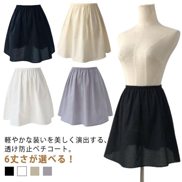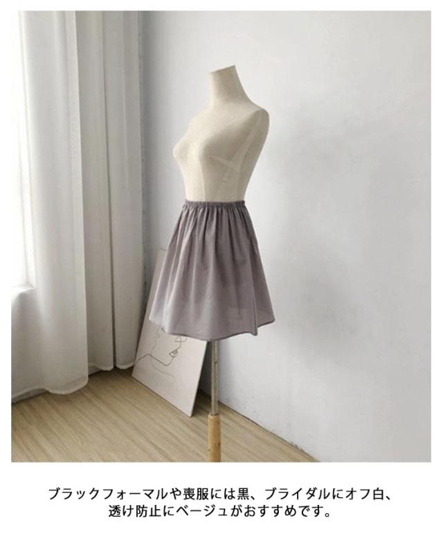 透けない シンプル ショート丈 インナー ペチスカート 薄手 ドレスインナー ロング丈 ヒザ丈 ペチコート 丈が選べる ウエストゴム ひびかない 1枚で透け防止 選べる4丈 フォーマル ブライダルインナー レディース 下着