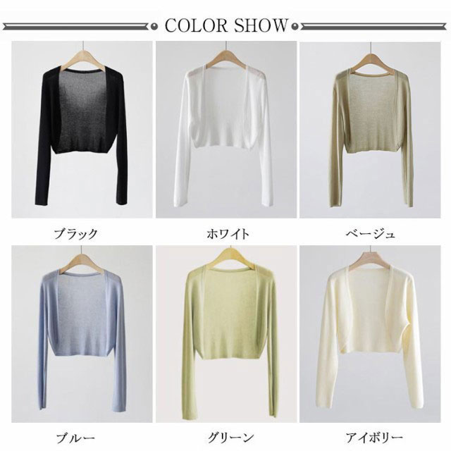 | 接触冷感 サマーニット カーディガン 全6色 程よい透け感で女性らしさを演出してくれるニットカーディガンです。 接触冷感でひんやり、涼しい着心地!春夏の日焼け対策に、冷房対策に最適。 丈は程よく短めにしてトレンドを押さえつつも、小柄さんでもバランスよく決まるシルエットに。パンツやスカートなど、ボトムス問わず使いやすい丈感です。 シアー素材で肌見せを楽しめるので、インナーにはシンプルなキャミやタンクがおすすめです。 | |