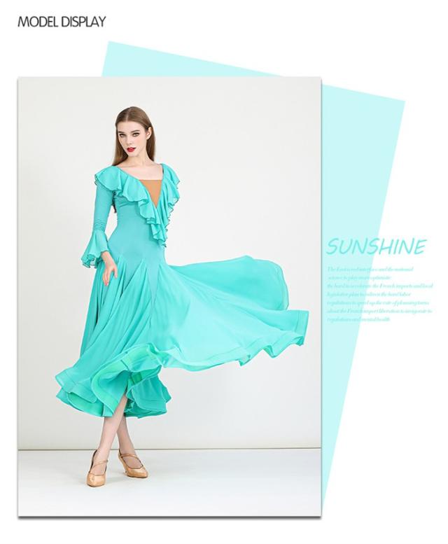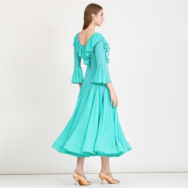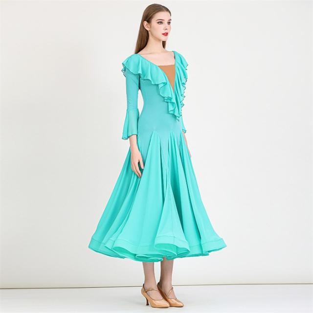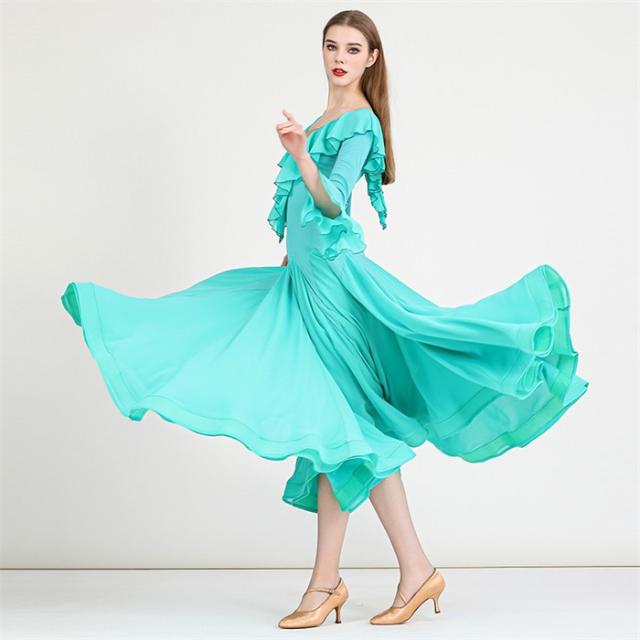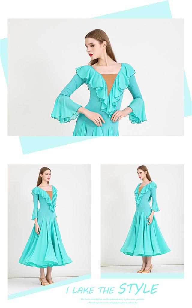 社交ダンスドレス モダンドレス 緑 社交ダンス衣装 社交ダンス ドレス 衣装 長袖 大きい裾 スタンダードドレス ワルツダンス ワンピースドレス ステージ衣装 ダンス衣装 ダンスウェア 競技会 パーティー 発表会 競技着 練習着 舞台 演奏会 演出 グリーン d1324d7d7lc