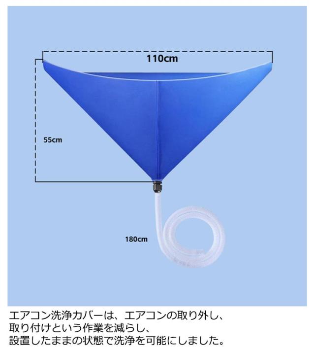 | エアコンクリーニングに必須の壁掛用エアコン洗浄カバーセット! 防水性に優れた生地で排水を外に通しません。 汚れた水を流せる排水チューブ付き! エアコンの中まで掃除する便利ブラシ付き! エアコン洗浄カバーは、エアコンの取り外し、取り付けという作業を減らし、設置したままの状態で洗浄を可能にしました。 かんたん装着・丈夫で長持ち!伸縮ゴム付きなのでエアコンにスポッとかぶせるだけですぐにエアコン掃除が始められます! しかも丈夫な素材なので繰り返し何度でも使え、とても経済的です! | |