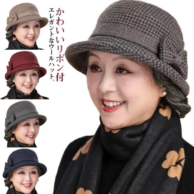 秋 あったか帽子 ラシャ ハット ミセス 防寒帽子 秋冬 シニア ぼうし リボン 冬 おばあちゃん 女性 帽子 祖母 お母さん おしゃれ ウール 厚手 防風 防寒 暖か あったか 帽子 高齢者 50代 60代 70代 80代 母の日 敬老の日