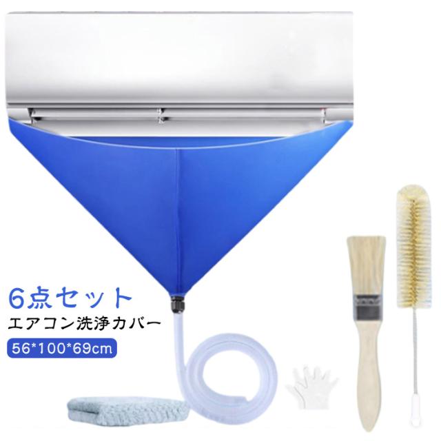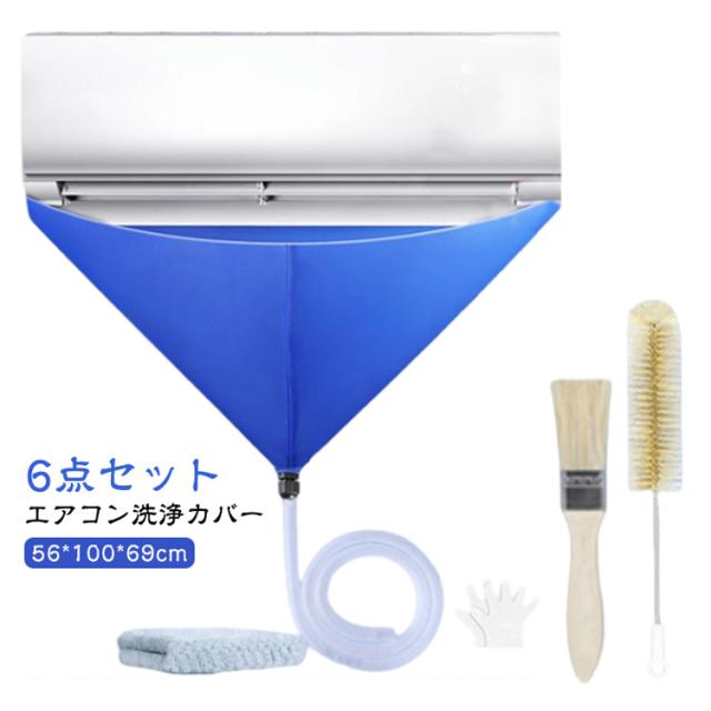 繰り返し使用可能 エアコン掃除カバー エアコン洗浄カバー シート 壁掛け用 エアコンクリーニングカバー 掃除 6点セット ブラシ エアコン洗浄カバー 排水ホース 家庭用 布巾付き 洗浄 汚水の飛び散り防止 クリーニング 業務用 簡単 防水カバー