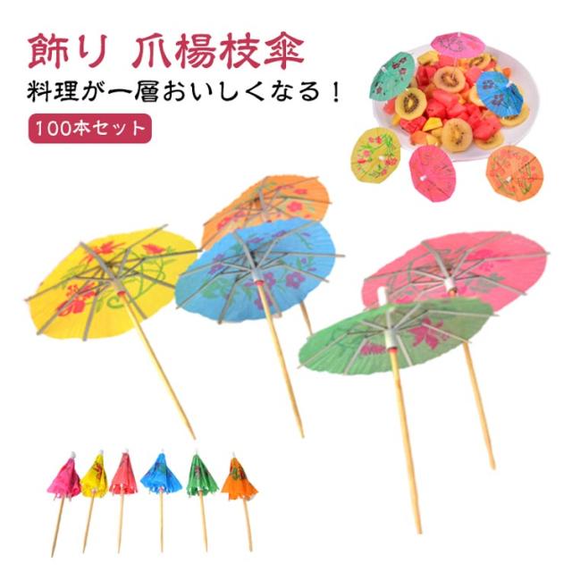 パラソル カクテル カクテル飾り 傘 飾り 100本セット 爪楊枝 お子様ランチ フルーツピック ミニ傘 料理の飾り 和風タイプ カクテルピック 紙傘 カクテル用 カクテルデコレーション ピンチョス インスタ映え オードブル