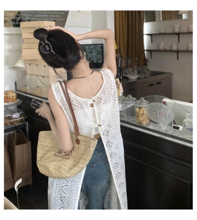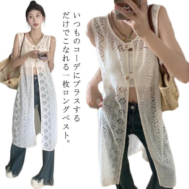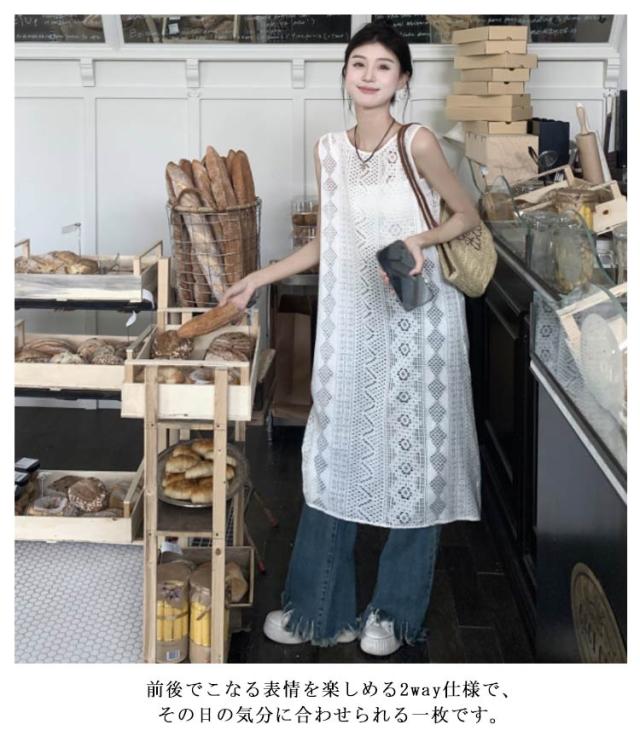 ワンピース 透かし編み ロングベスト ワンピース 羽織 重ね着 レイヤード ノースリーブ デート 透け感 総レース レディース 花柄 ロング丈 きれいめ 春夏 普段着 2WAY リゾート 可愛い 送料無料