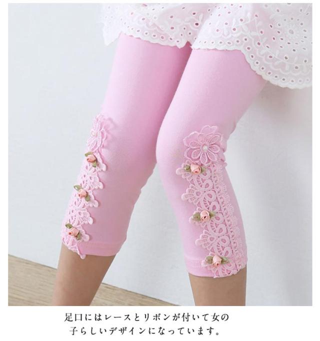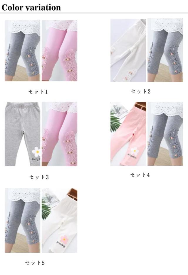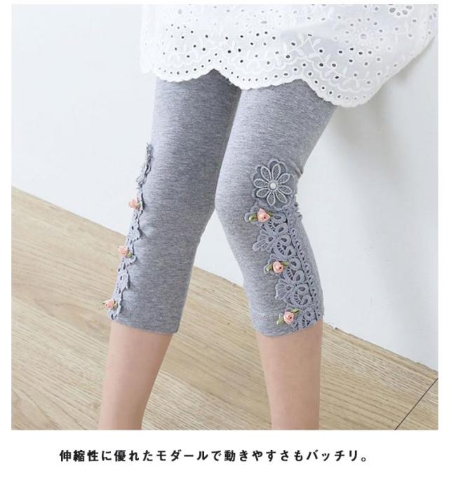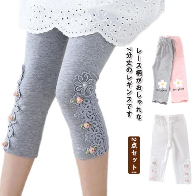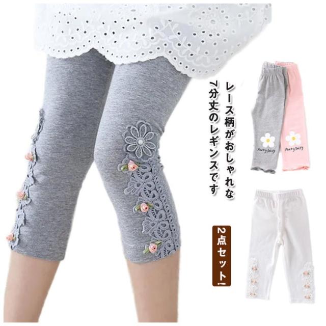 | 2点セット!レース柄がおしゃれな7分丈のレギンスです 足口にはレースとリボンが付いて女の子らしいデザインになっています。 伸縮性に優れたモダールで動きやすさもバッチリ。 ウエストゴムでお着替えも楽チン。 いつものコーディネートを1ランク可愛さUPしてくれます。 | |