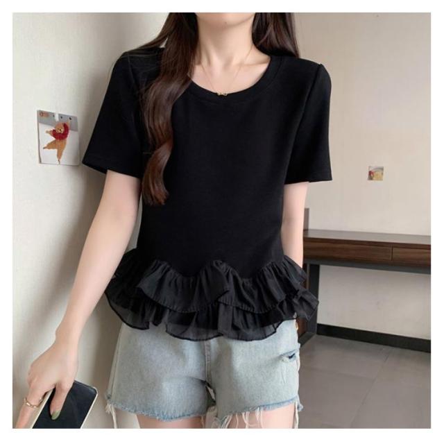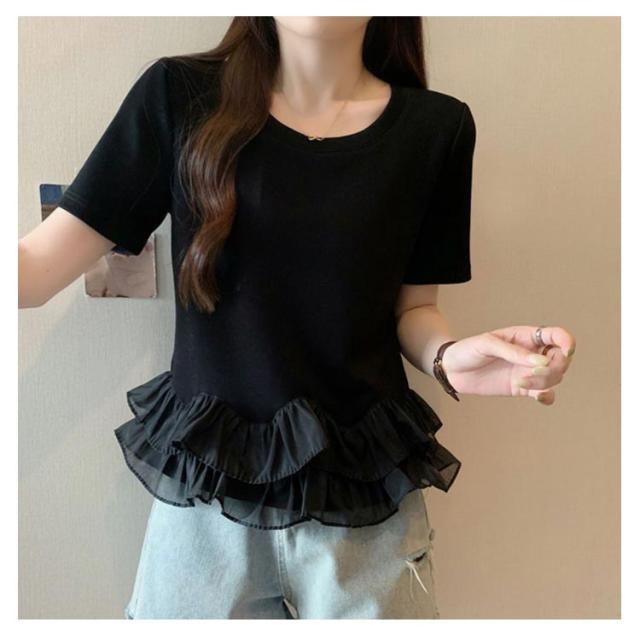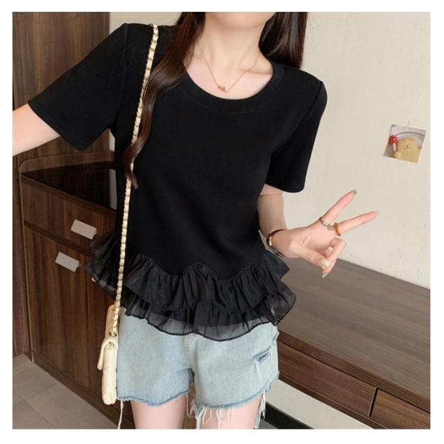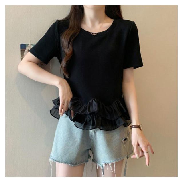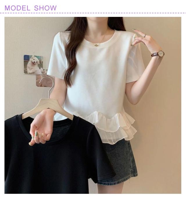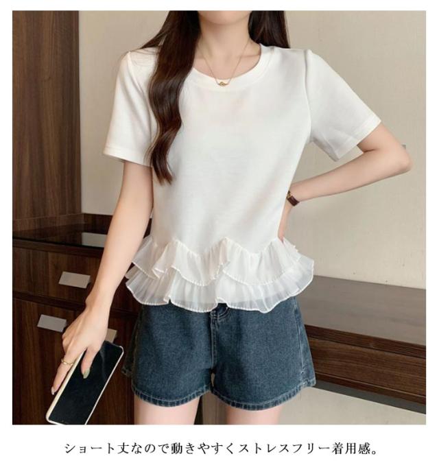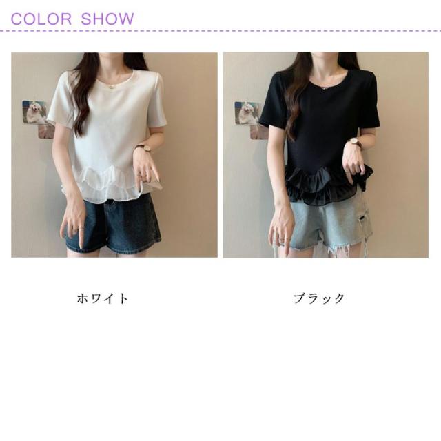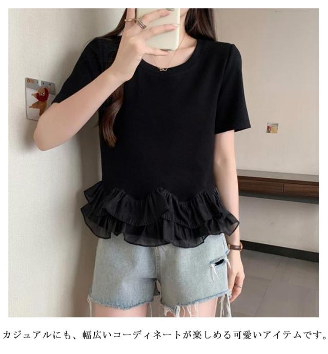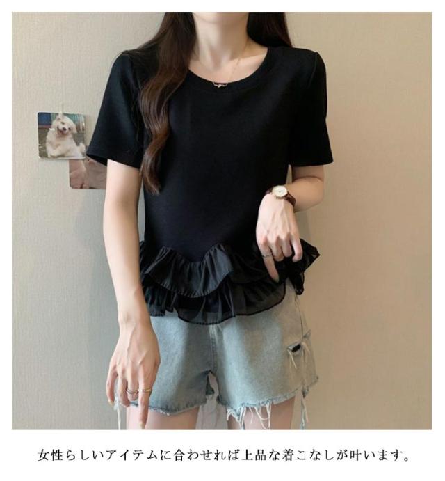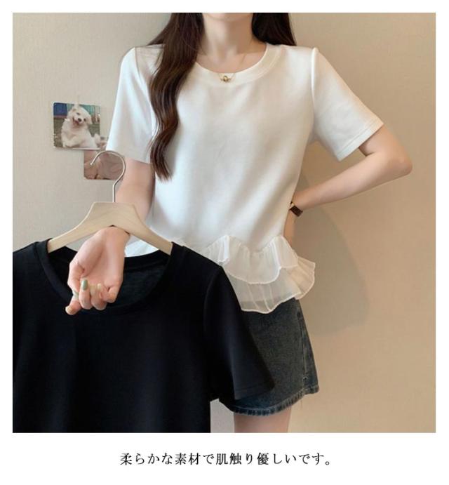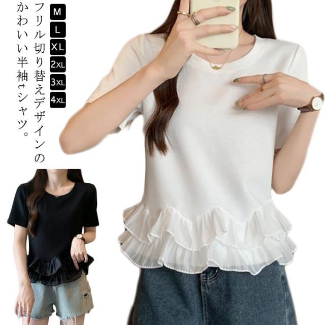 レディース Tシャツ フリル 切り替え カットソー 大きいサイズ トップス フリル 春 夏 tシャツ シンプル 半袖tシャツ 半袖 上品 フェミニン 韓国ファッション M L XL 2XL 3XL