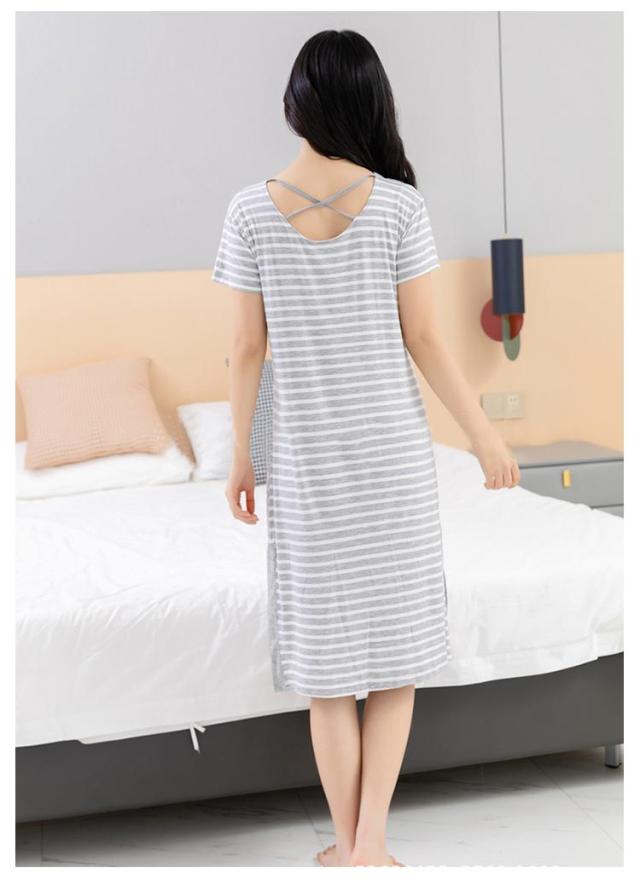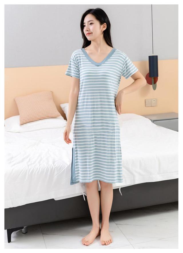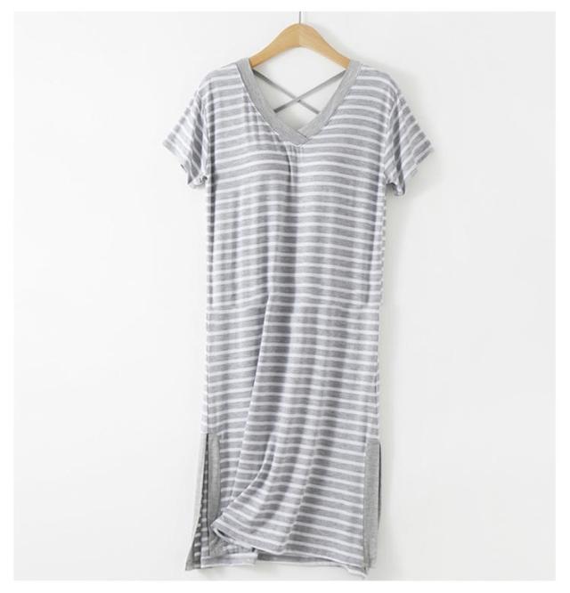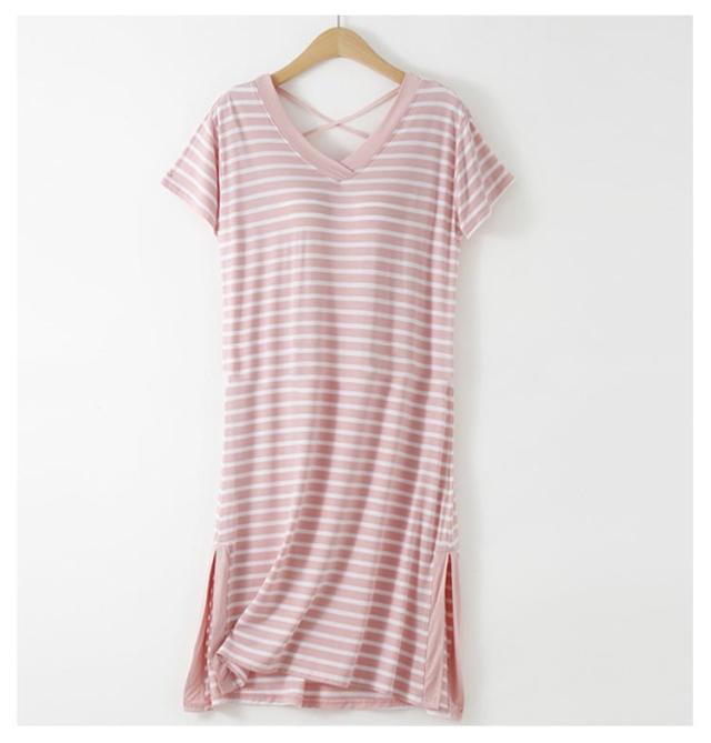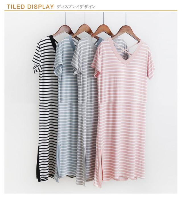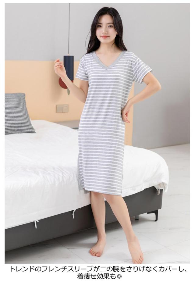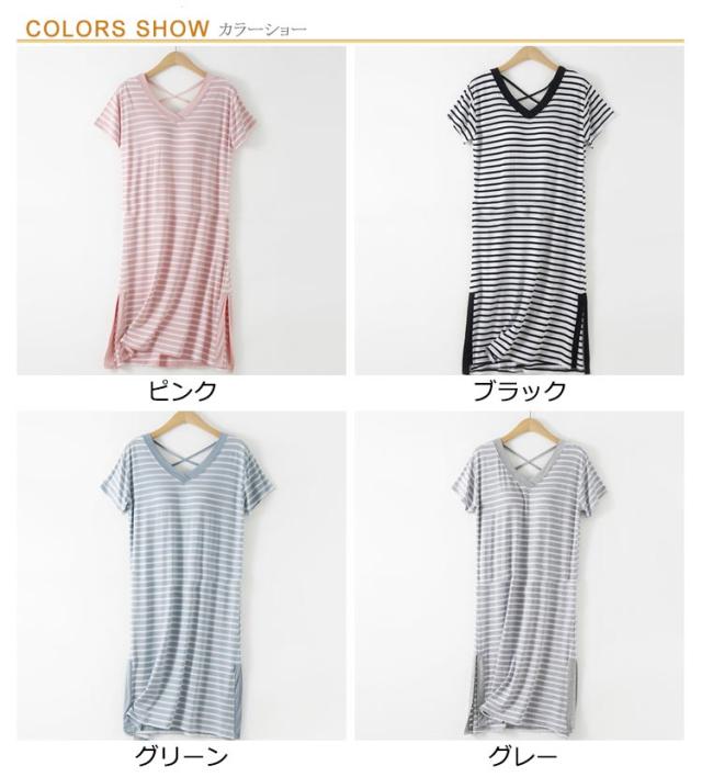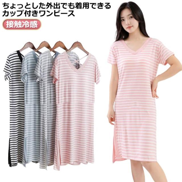 カップ付きワンピース レディース ボーダー 20代 ワンマイルウェア カップ付きワンピース カップ付き Tシャツワンピース vネック 半袖 ロングワンピース バッククロス 40代 30代 ルームワンピース パジャマ 春夏 ナイトウェア リラックスウェア