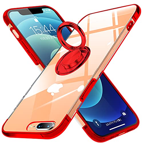 i Phone 8 Plus用 ケース i Phone 7 Plus用 ケース リング付き クリア 耐衝撃 TPU 米軍MIL規格 車載ホルダー対応 回転 リング アイフォン 7