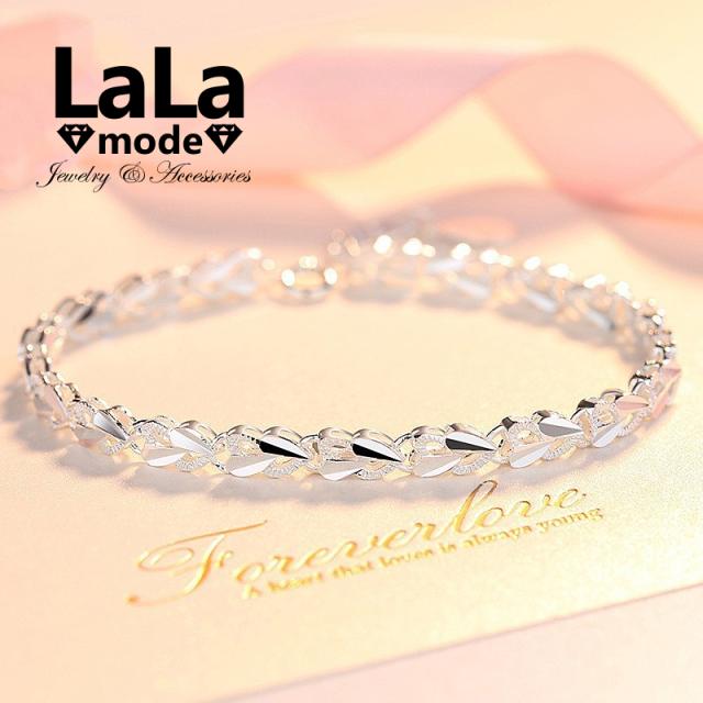 ブレスレット レディース ハート リンクチェーン シルバー 925 ロジウムコーティング プラチナ仕上げ アレルギー対応 30代 40代 50代 華奢 バングル 送料無料 プレゼント 人気 おしゃれ かわいい 細い シンプル アクセサリー ジュエリー