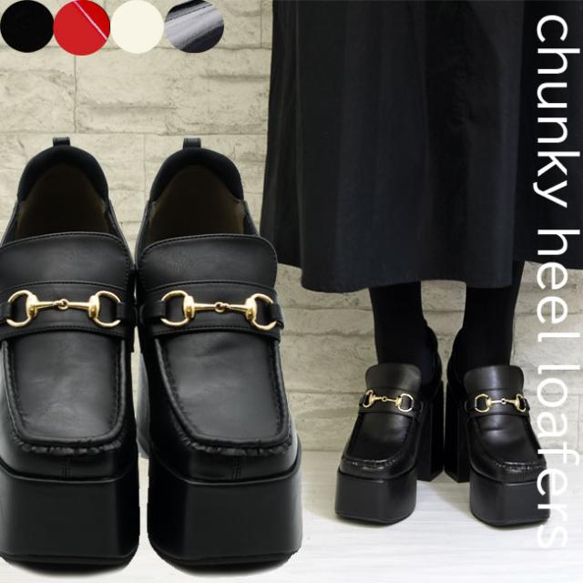 ヨースケ YOSUKE チャンキーローファー 厚底ローファー 厚底パンプス チャンキーヒール レディース 全4色 S-LL 黒 白 2810137