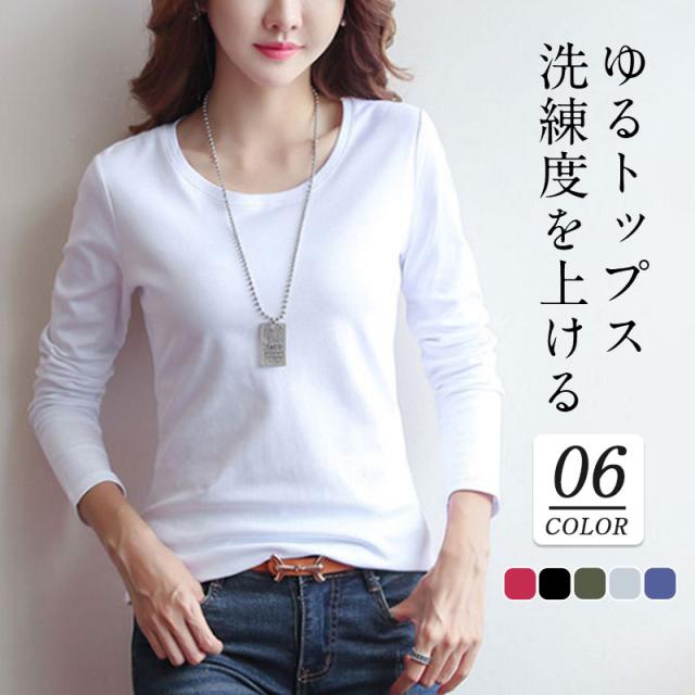 『2個以上購入で200円OFF』Tシャツ カットソー ロンt レディース 長袖 無地 トップス 春秋 スリム 着痩せ シンプル おしゃれ 薄手 重ね着 レイヤード