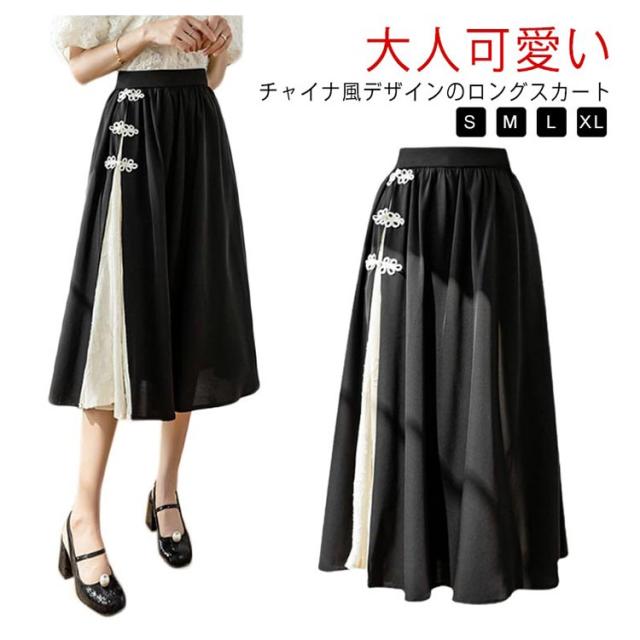 バイカラー 夏 ロングスカート 体型カバー エレガント系 スカート 40代 チャイナ風 きれいめ チャイナ風 切り替え 30代 大人可愛い レディースファッション 可愛い お出かけ 女子会 お茶会