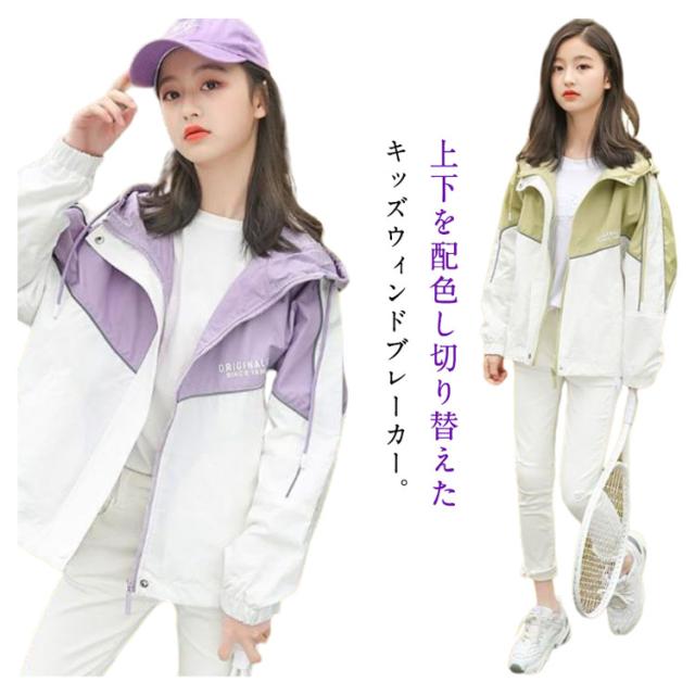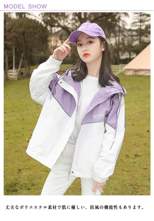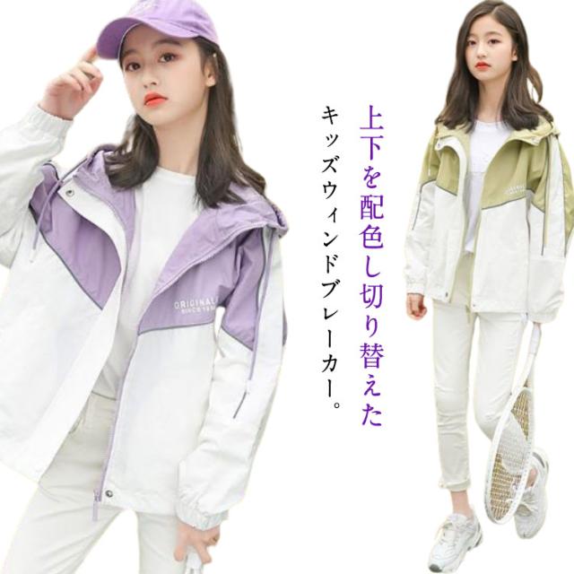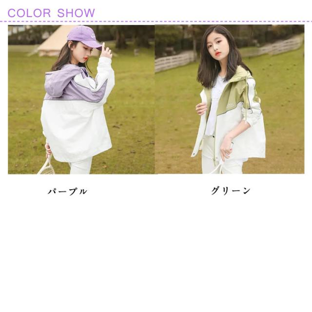 春 お洒落 キッズ 女の子 配色 薄手 防風 アウター 子供服 ウィンドブレーカー ジャンパー ジャケット 春 春コート 秋 ジップアップ トップス ガールズ 切り替え マウンテンパーカー ブルゾン フード付き ジャンパー カジュアル マウンテンパーカー 秋 送料無料