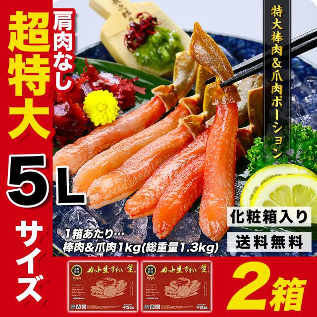 【送料無料】 面倒な肩肉なし♪超特大&超極太4L〜5L! カット生ずわい蟹 1kg(赤箱)約4人前×2箱 かに カニ ズワイガニ ずわいがに ギフト 贈り物 贈答 のし 冷凍 hp 年末お届け可能 冬ギフト 年末年始 お歳暮 御歳暮