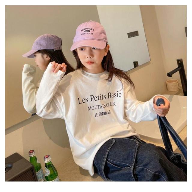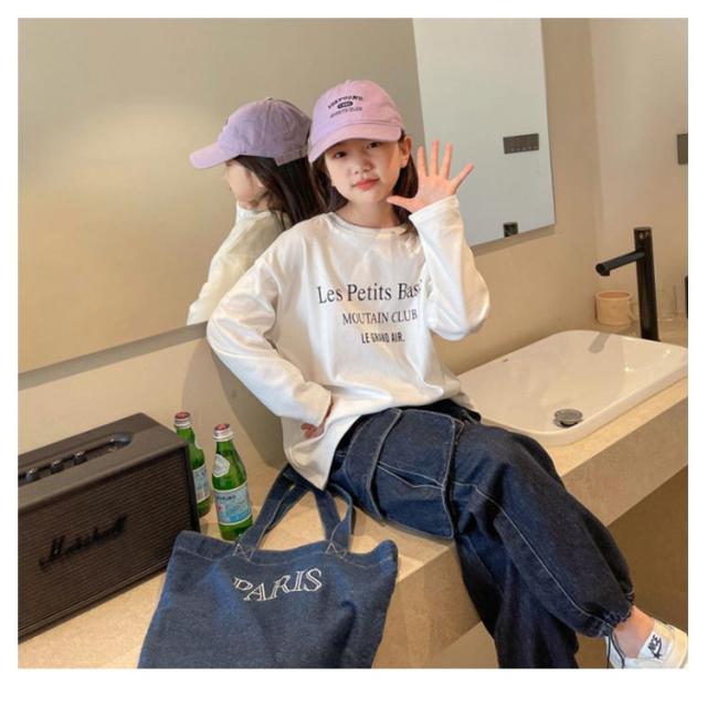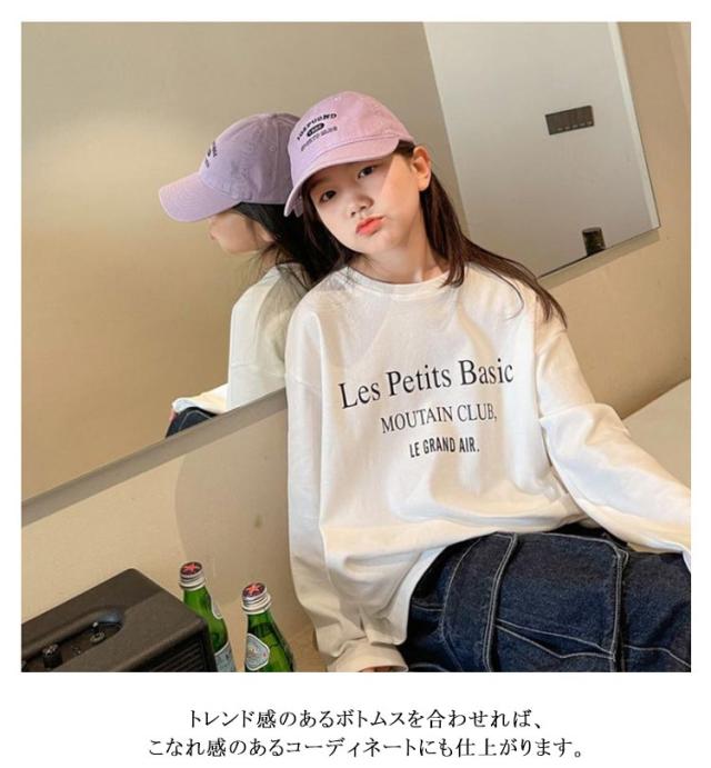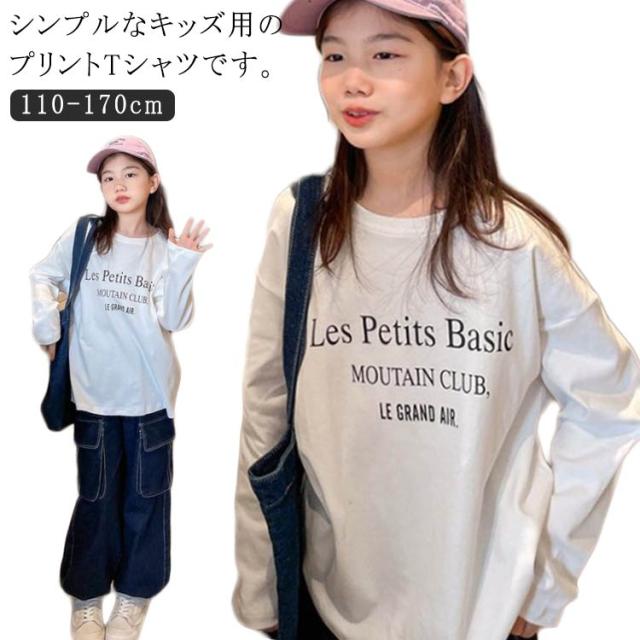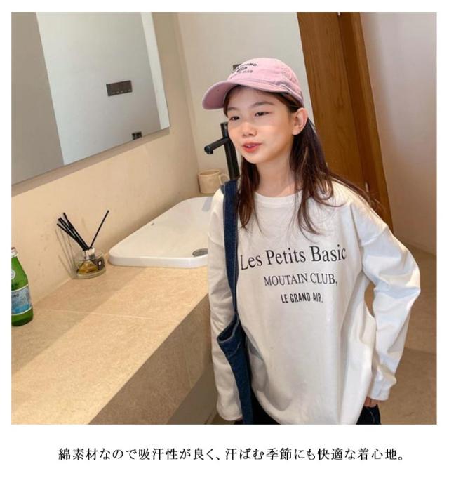 長袖Tシャツ 女の子 キッズ カットソー ロングTシャツ プリント 子供 小学生 薄手 トップス 男の子 小学生 中学生 丸襟 英字プリント ロゴTシャツ ゆったり 大きいサイズ カジュアル おしゃれ お出かけ