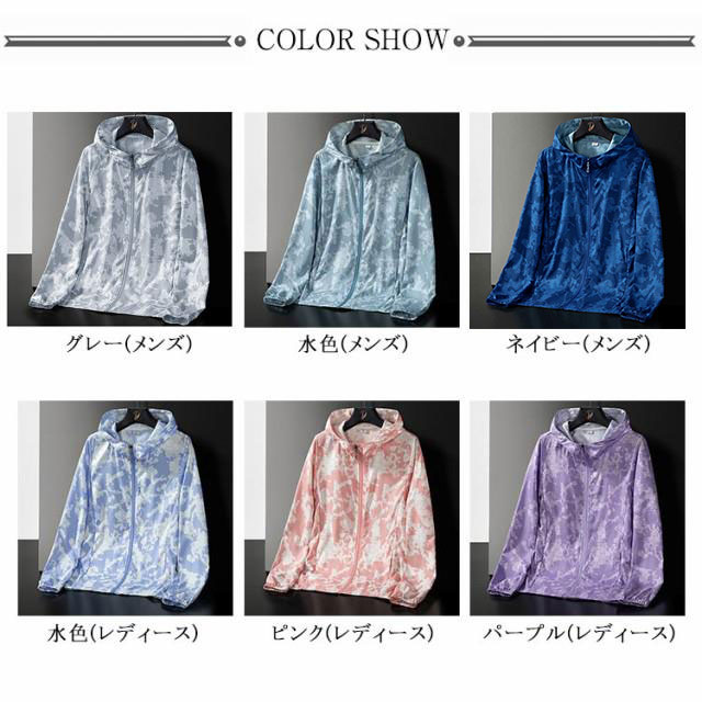 | 色 | グレー(メンズ) 水色(メンズ) ネイビー(メンズ) 水色(レディース) ピンク(レディース) パープル(レディース) |