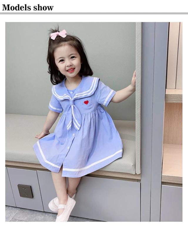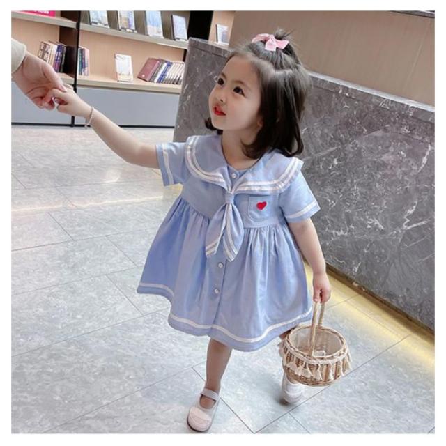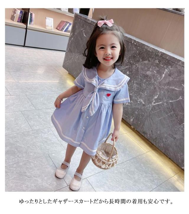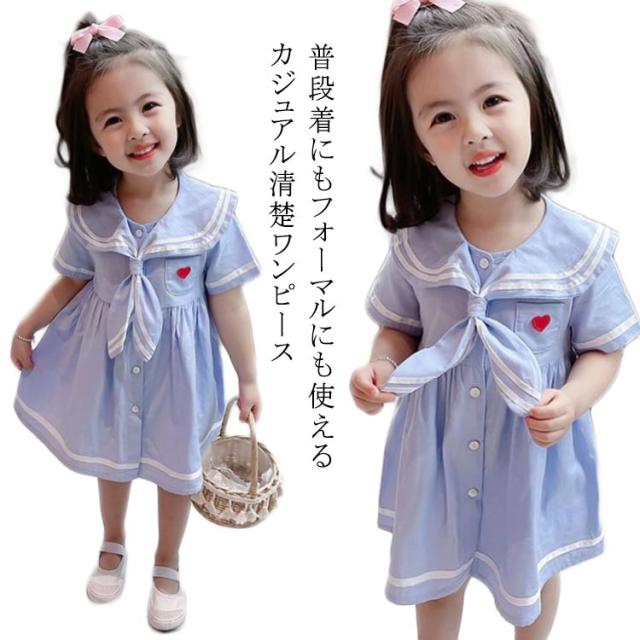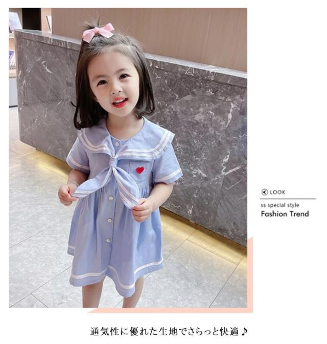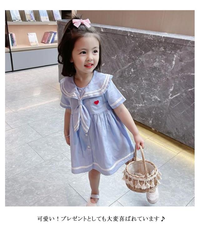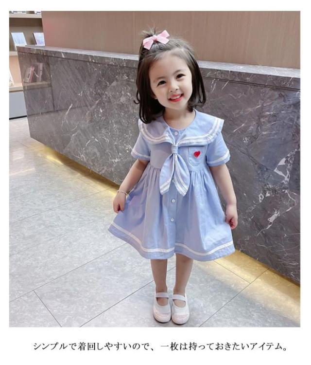 キッズ 半袖 ワンピース 子供服 セーラー ワンピース フォーマル 綿 女の子ワンピース 可愛い 夏 送料無料 ショートスカート ベビー服 キュート ワンピース お受験 お出かけ 誕生日 ギフト プレゼント 通園 通学 夏服 かわいい