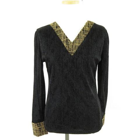 【中古】フレンチパヴェ FRENCH PAVE カットソー Vネック 長袖 黒 *A15 レディース