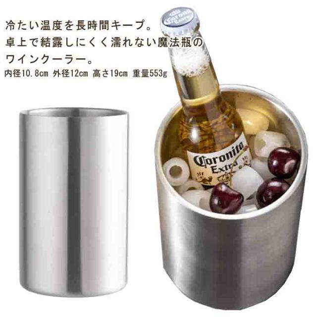 | 冷たい温度を長時間キープ。卓上で結露しにくく濡れない魔法瓶のワインクーラー。 中に置くだけで冷たさが長続き&結露もしません。スタイリッシュかつシンプルなデザイン性も魅力。 ステンレス製&2層断熱構造だから保冷機能が高く、中に置くだけで冷たい状態をキープ! 容器の口部口径は約10.8cmの広口設計なので、ワインやシャンパンの瓶が入れやすくなっています。瓶ビールもOK。 電気を使わず保冷するのでとってもエコ。耐久性に優れたステンレス製で丈夫で長持ちします。 | |