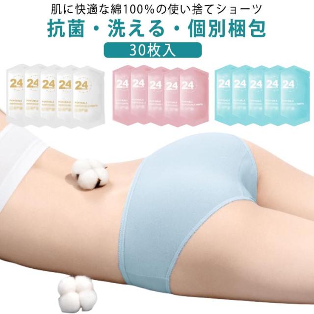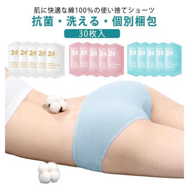 30枚入 使い捨てパンツ 綿100% 女性用 ショーツ 使い捨て パンツ 個別包装 コットン 綿 100 下着 セット 入院 女性用パンツ 出産用 介護 消耗品 抗菌 個包装 安全 安心 衛生的 旅行 業務 施術用 修学旅行 携帯用 避難 便利 インナー